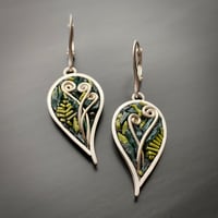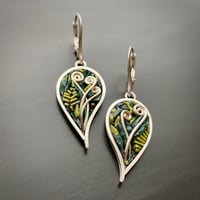 Dimensions: Handcrafted Sterling bezel is 1.25" x .75"wide, earring is 2"' long total. Sterling lever-back ear wire